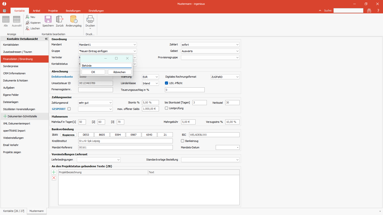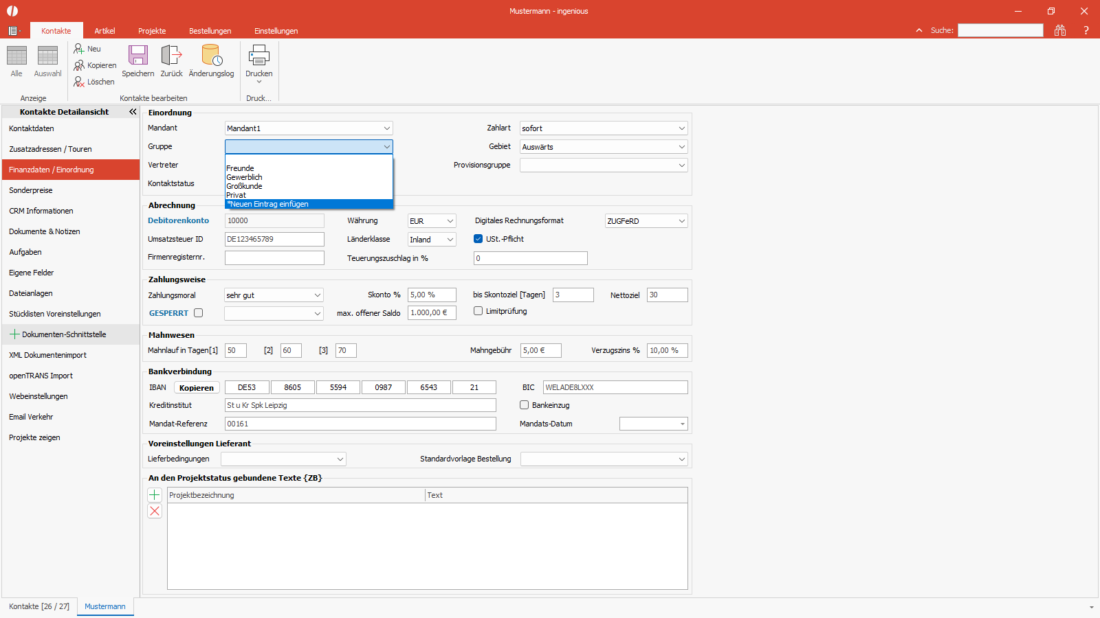 | Beispiel Auswahllisten in den Kontakt-Daten |